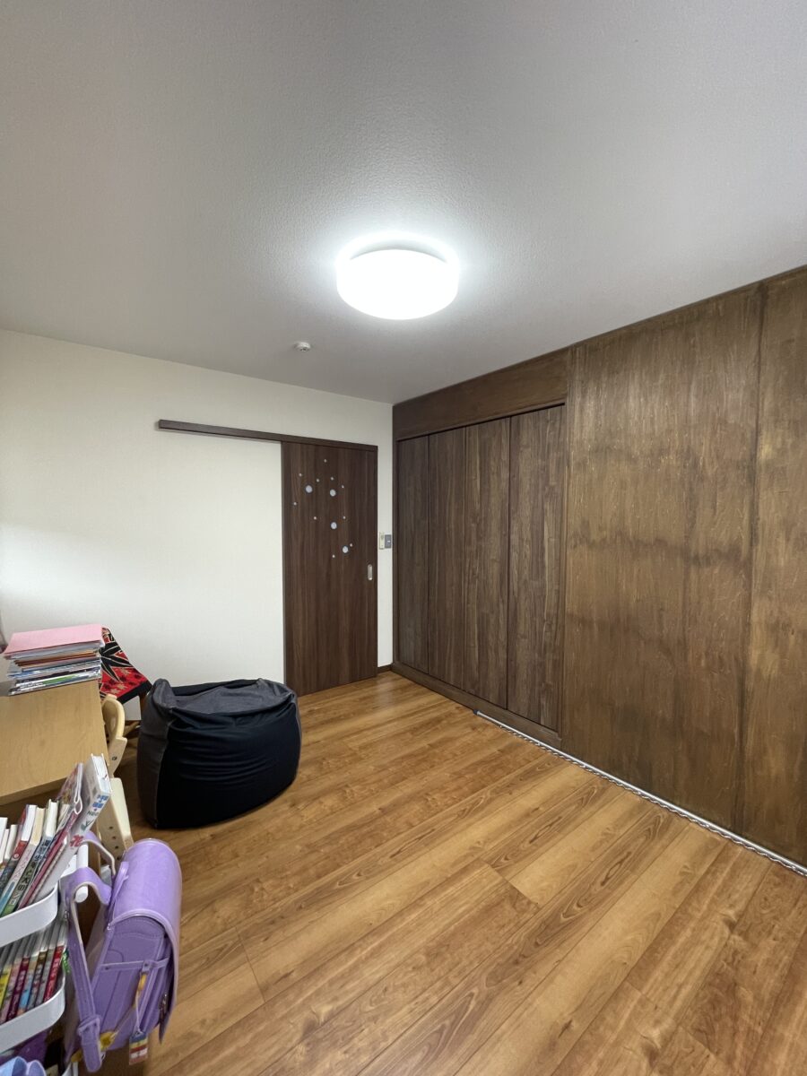 | 工事内容 | 広い一間だった空間を、移動式収納棚を動かし、2つの子供部屋に間取り変更 |